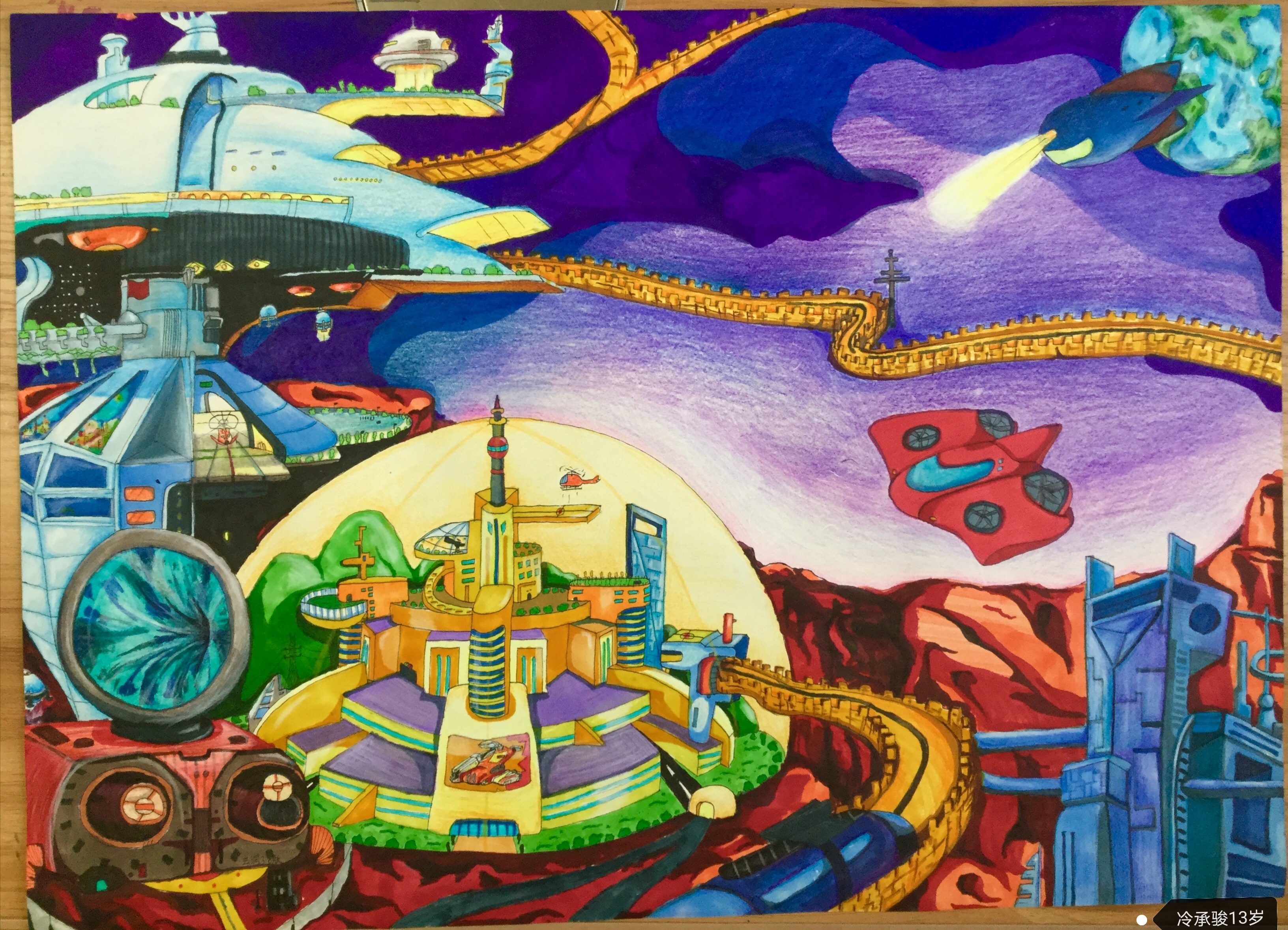 火星的环境和地球截然不同,二 氧化碳含量较高,未来人利用科技手段,将二氧化碳转换成了新生活能源。火星环境恶劣,氧气含量不高,地心引力不够,人们就制造了保护障,有效维护了人们的正常生活。火星上的建筑材料都是新型材料,可以缓解火星地表的震动对楼房的损伤,也可以抵挡沙尘暴的侵袭等一切不利因素。火星站台连接太空轨道,沟通和各个星球上的站台来往。轨道酷似长城,保留了我国深厚的历史文化底蕴。